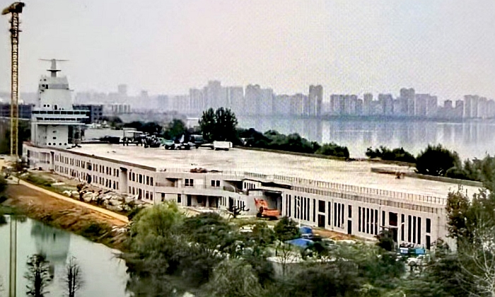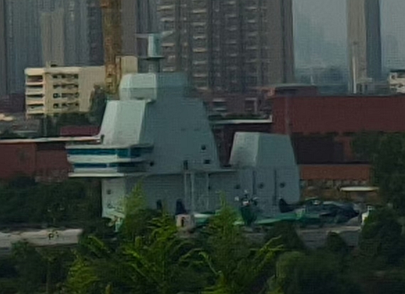 2025年10月上旬出現的武漢「航母樓」照片艦島,反應004航母的構型。