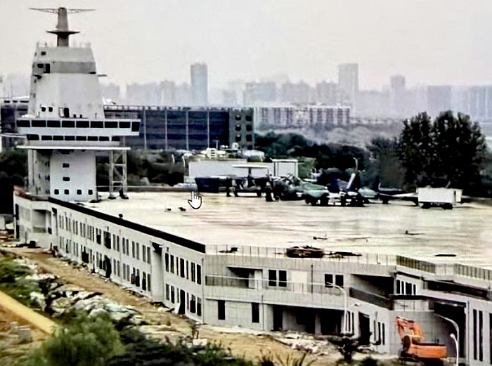 2022年4月大連造船廠香爐礁廠區某工作棚前方施工區域,出現三架全尺寸J-15艦載戰鬥機模型。2