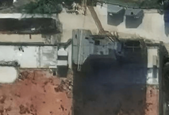 2025年1月初的武漢「航母樓」衛星照(左),正在進行一輪大規模改造。與先前該設施模擬
