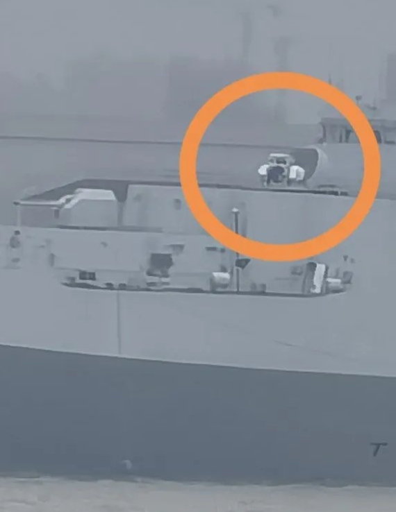 (上與下)071四明山號(986)在2024年8月維修期間,在艦橋前方裝置一座激光武器原型進行測試,