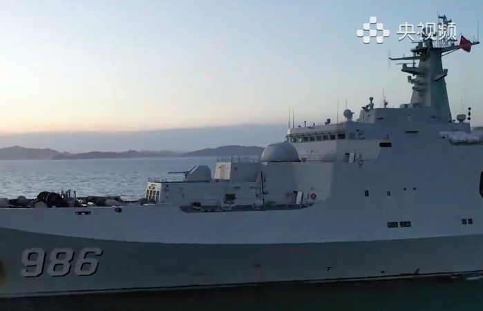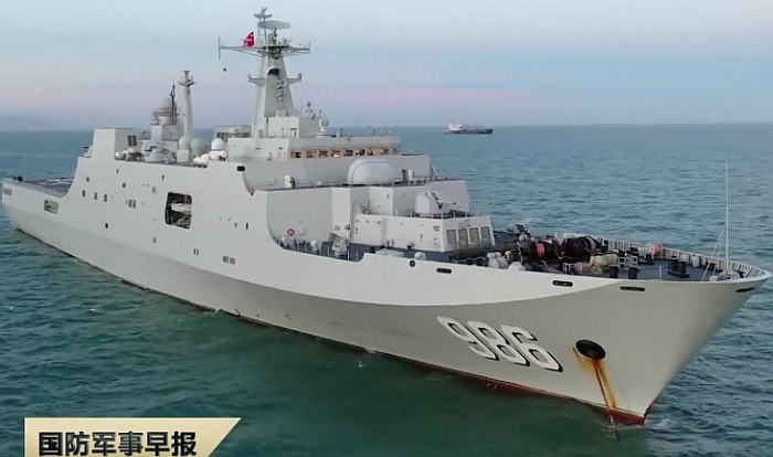 俯瞰 中國首艘071型崑崙山號(998)綜合登陸艦。