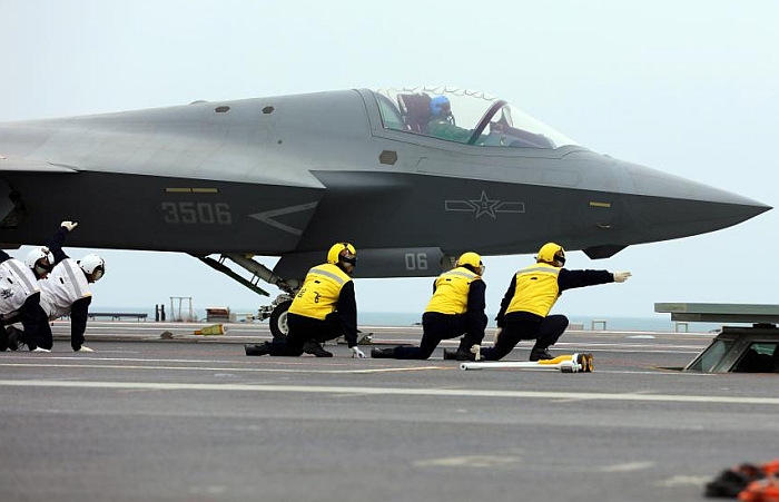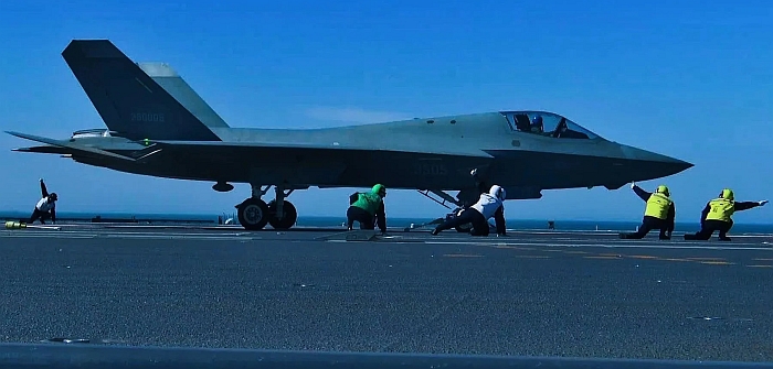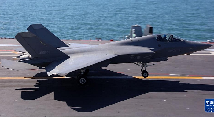 的畫面。此為殲-35艦載戰鬥機準備彈射升空。