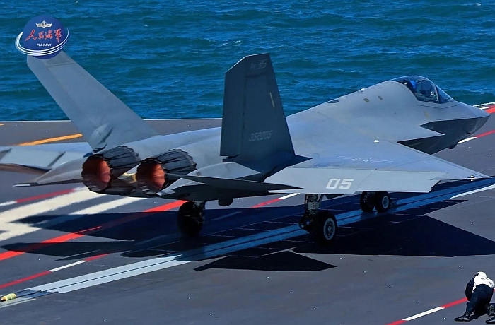 2022年7月22日,網路上首次出現殲-35第四代艦載戰鬥機清晰照片。這架編號350003的