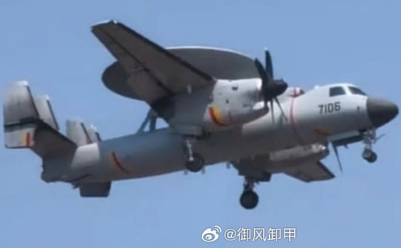 的畫面。此為空警-600預警機在甲板滑行的畫面,機翼尚未展開。