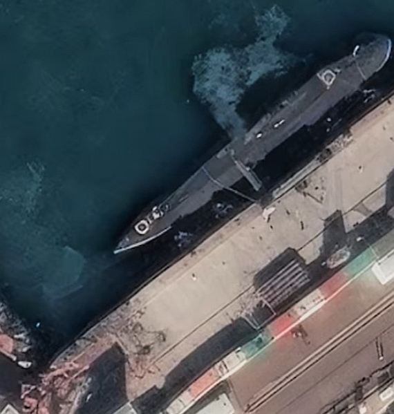 2025年12月15日,烏克蘭一艘UUV攻擊停在新羅西斯克基地的Kilo 636.3潛艦; 該潛艦在畫面中左上角,而UUV引爆位置靠近該艦艦尾。