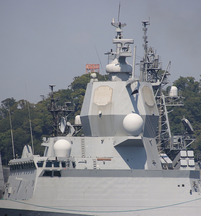 有朝下的玻璃窗戶。艦橋後方設有AN/SPY─1F的相位陣列雷達塔,其後可以看到NSM反艦飛彈