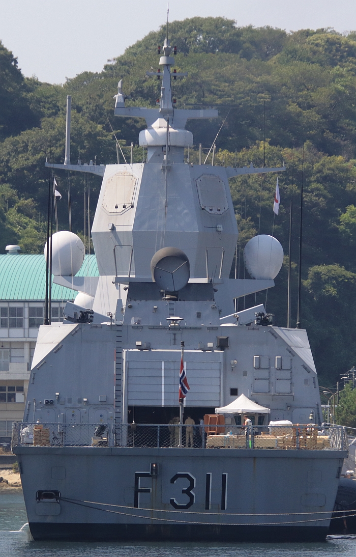 (上與下)從後方看羅爾德.阿蒙森號(HNoMS Roald Amundsen F311),攝於2025年8月30日橫須賀。