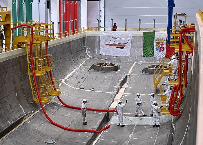 S.p.A.公司的薩爾扎納船廠舉行意大利海軍首艘CNG/C新世代水雷反制艦的開工典禮,正式展開玻璃纖維艦體的層壓(lamination)製造程序。 |