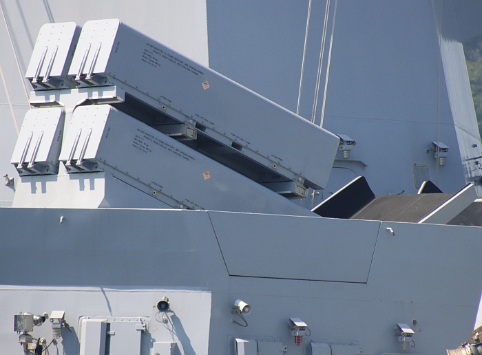 (上與下)挪威南森級巡防艦羅爾德.阿蒙森號(HNoMS Roald Amundsen F311)的NSM反艦飛彈發射器。