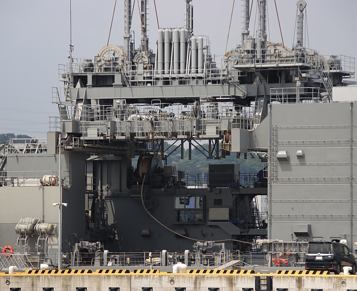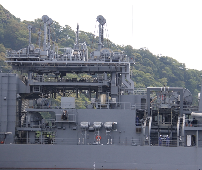 (上與下)千代田號(ASR-404)的中部作業井區域,其後有收放載具的吊車。攝於2025年8月25日