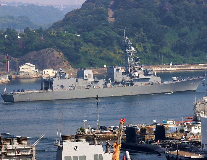 (上與下二張)在2019年5月新加坡國際海事防務展(IMDEX 2019)的村雨號(DD-101),