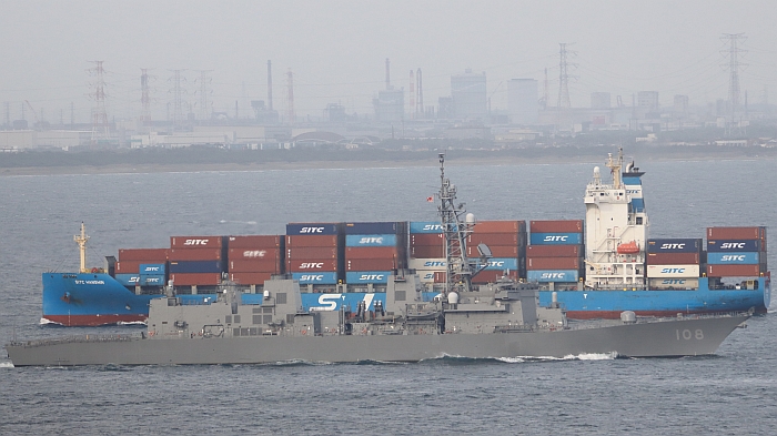 (上與下二張)村雨號正從橫須賀軍港出航,攝於2025年8月25日。
