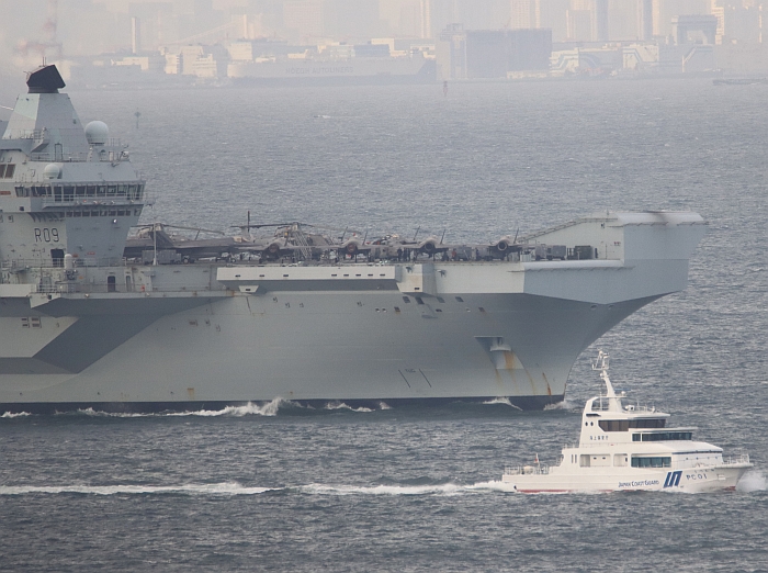 (HMS Geroge Washington CVN-73)航空母艦。上為眉山級小型巡視船愛鷹號(PS-7),