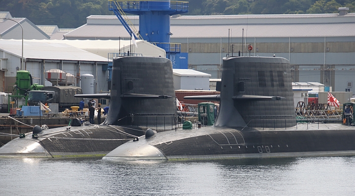 (上與下)在三菱重工神戶造船廠建造中的首艘29SS型潛艦(SS-513),攝於2020年10月初。