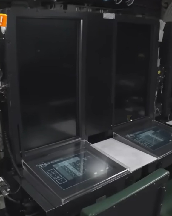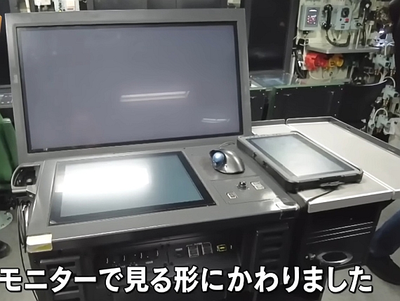 (上與下)大鯨級控制室內的顯控工作站都使用大型直立式觸控屏以及 水平觸控式面板。