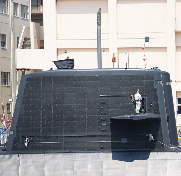 。注意其帆罩採用傾斜漸縮式設計,據信是用來減少敵方主動聲納朝原方向的反射波(原理類似雷達匿蹤)。