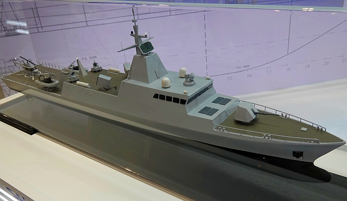 (上與下)在2025年5月新家坡國際海事防務展(IMDEX 2025)中,以色列造船廠展出閃光級巡邏艦模型 。