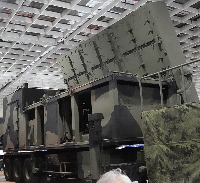 「強弓」飛彈配套的主動式相位陣列雷達車背面。主陣面設計成多個各自獨立的可抽換單元,