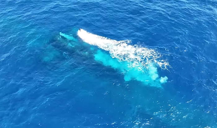 (上與下)2026年1月29日,海鯤艦首次進行潛航測試時下潛的畫面。