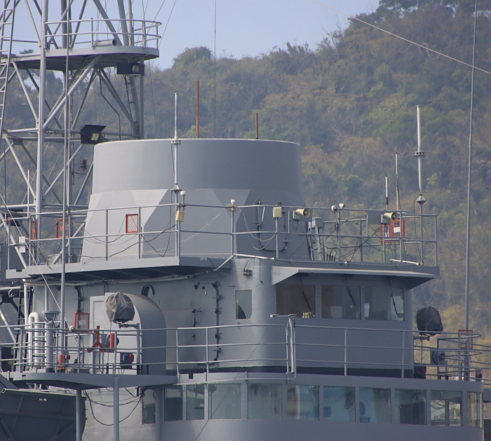 已經卸下,例如「八角塔」的相位陣列雷達、艦橋上方的敵我識別器、各種通信天線、裝在