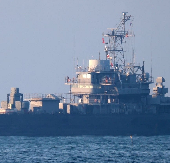 已經卸下,例如「八角塔」的相位陣列雷達、艦橋上方的敵我識別器、各種通信天線、裝在