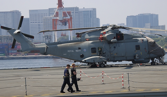 威爾斯親王號(HMS Prince of Wales R09)的梅林預警直昇機,可以看到左側未充氣的
