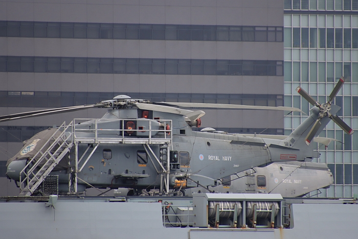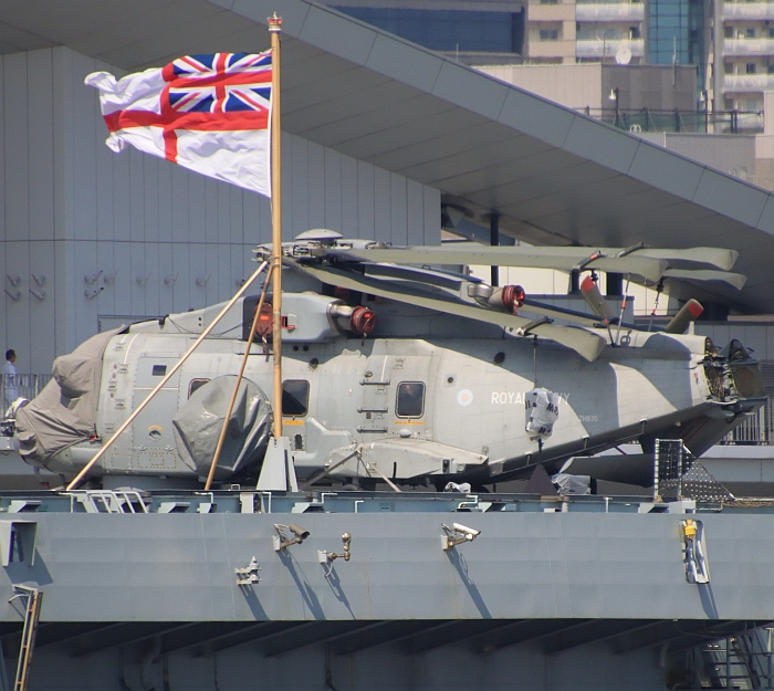 威爾斯親王號(HMS Prince of Wales R09)的梅林反潛直昇機。攝於2025年8月29日東京國際郵輪碼頭。