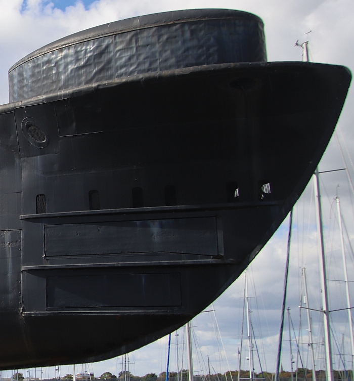 艦首,艦首上方是Type 187「攻擊者」聲納的外罩。攝於2024年9月11日。