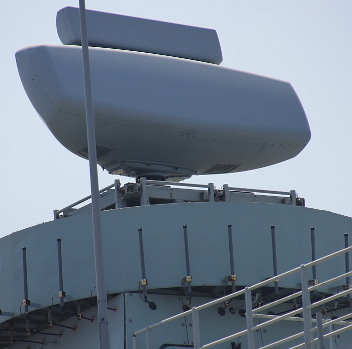 (上與下二張)伊麗莎白女王號(HMS Queen Elizabeth R08)航空母艦的Type 997雷達。