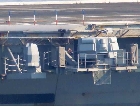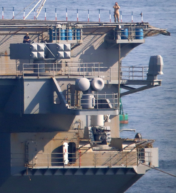 喬治.華盛頓號(USS George Washington CVN-73)航空母艦左舷,注意有AN/SLQ-59(SEWIP Block 3)