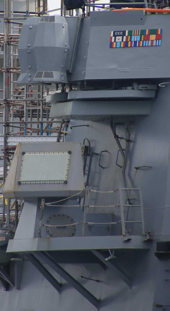 美國海軍柏克級飛彈驅逐艦柯蒂斯.威爾伯號(USS Curtis Wilbur DDG-54)艦橋兩側,下為原有