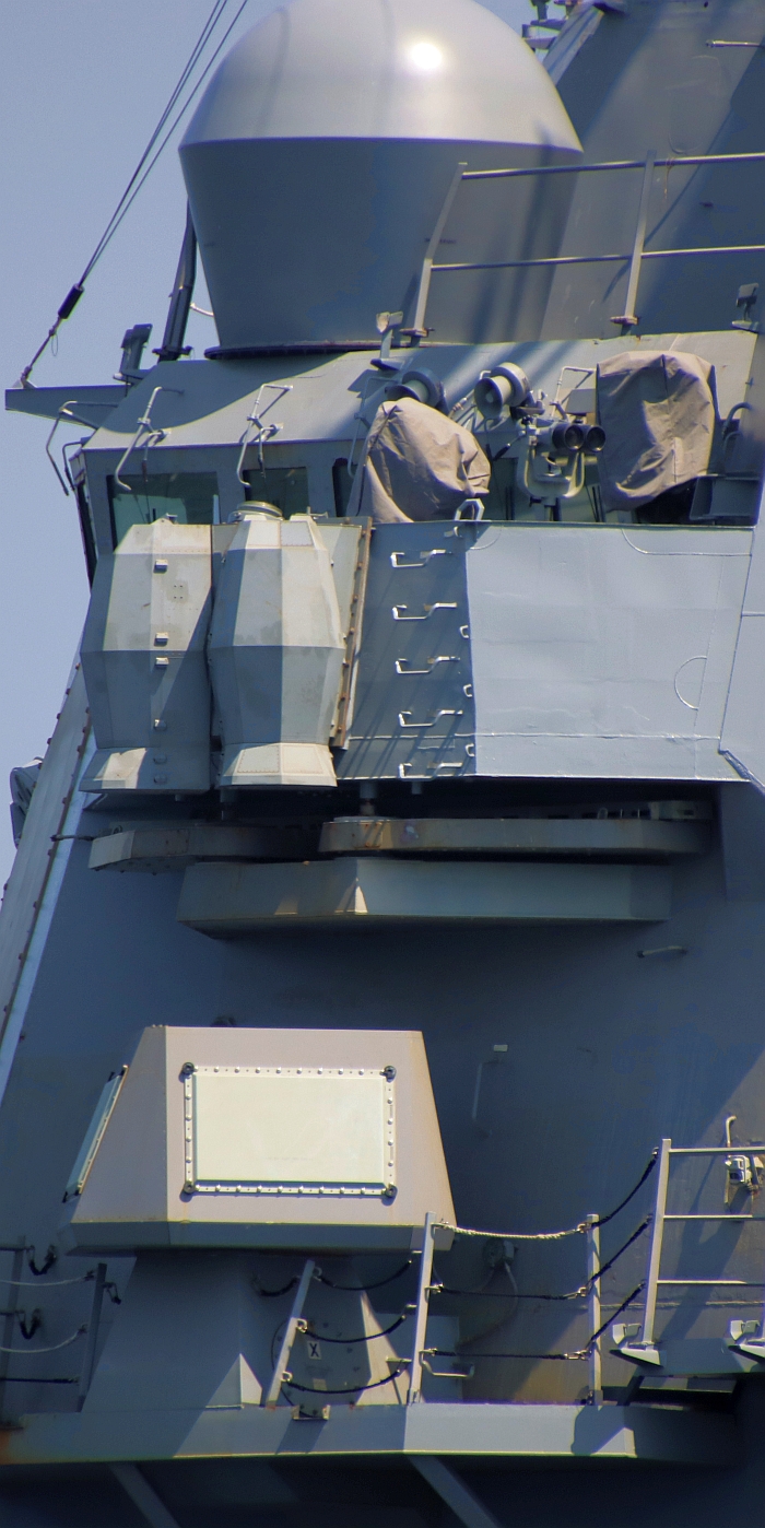 柏克Flight 1驅逐艦米利厄斯號(USS Milius DDG-69)船樓側面的AN/SLQ-32(V)6電子戰天線(下)