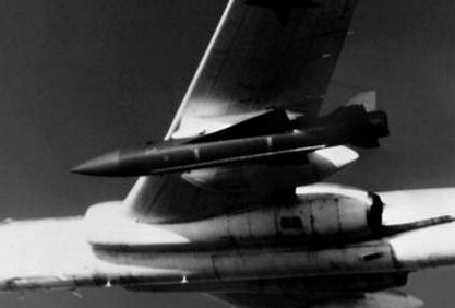 - 6“王魚”是蘇聯於60年代中期開始研製的一種既可裝烈性炸藥,也可帶核彈頭的巡航飛彈,主要用於攻擊地面重要目標和大型海上目標。Tu-16、Tu-22M轟炸機可在翼下攜帶兩枚AS- 6。該彈採用大後掠角三角形彈翼和梯形尾翼,動力裝置為一台固體火箭發動機 , 彈長10.7米, 彈徑 0.9米, 翼展2.5米, 發射重量5000千克。射程 350千米(海平面), 700∼800千米(高空)。 最大速度M數 2.5∼ 3。該彈的制導方式為慣性加末段主動雷達 (或被動雷達)制導。