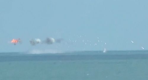 (上與下)2017年12月上旬解放軍「藍劍杯」海軍導彈專業競賽中,一艘056護衛艦連續發射 兩枚HQ-10導彈並擊落來襲靶彈(應為鷹擊-83)。
