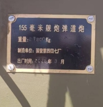2025年3月網路上出現的155mm艦砲彈道砲的底座說名牌。 在2025年8月,網路上出現新型中國艦砲的砲塔殼以及砲身分別裝載於重型載重車上進行陸路運輸的照片。在2026年2月中旬,網路上出現一艘在遼南造船廠的實驗艦,艦首安裝了一座大型艦砲原型砲,應該就是這座155mm艦砲。外界推測,中國海軍155mm艦砲可能是用於兩棲登陸作戰時的火力支援等任務。