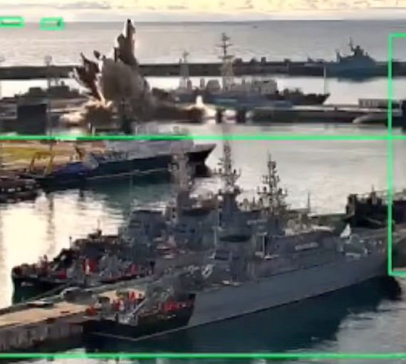2025年12月15日,烏克蘭一艘UUV攻擊停在新羅西斯克基地的Kilo 636.3潛艦; 該潛艦在畫面中左上角,而UUV引爆位置靠近該艦艦尾。