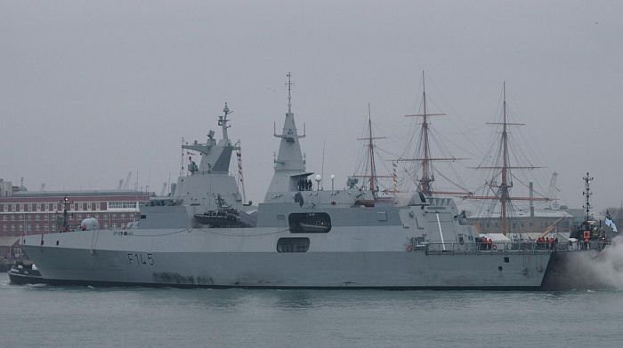 南非首艘MEKO-A200SAN勇敢級巡防艦阿瑪托拉號(F-145)的艦尾。