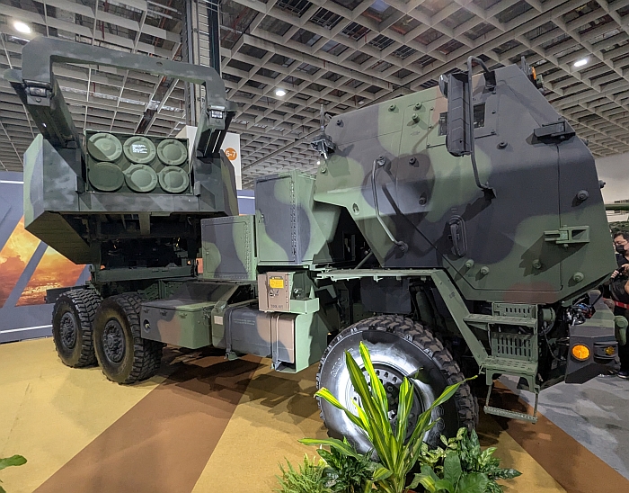 (上與下)2025年9月台北國際航太國防展(TADTE 2025)中,台灣陸軍首次展出購自美國的HIMARS