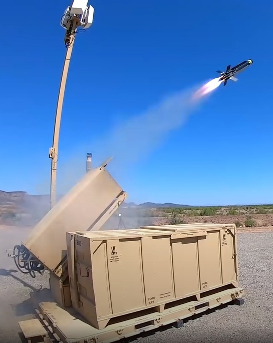 美國陸軍固定陣地式低空慢速小型無人機防禦系統(FS-LIDS),裝備 四聯裝郊狼Block 2B遊蕩攔截器發射器。