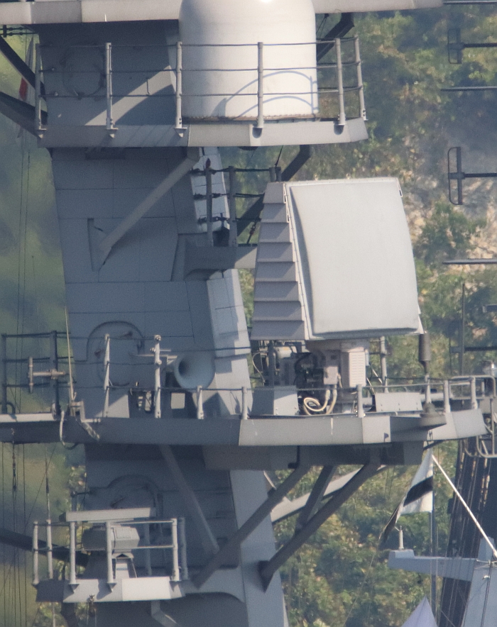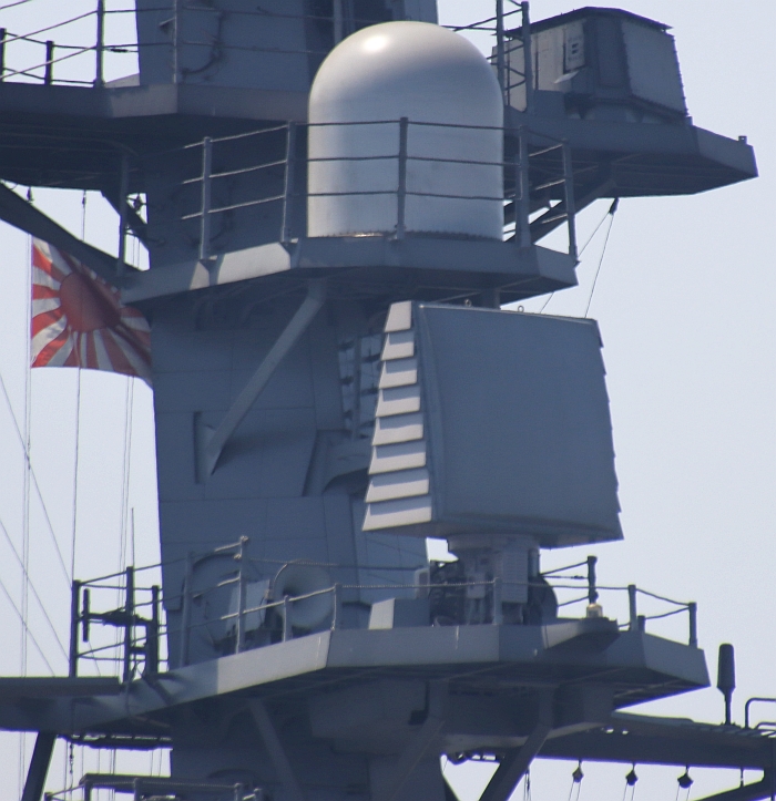 日本海上自衛隊摩耶級飛彈驅逐艦摩耶號(DDG-179)主桅杆上的AN/SPQ-9B追蹤雷達,