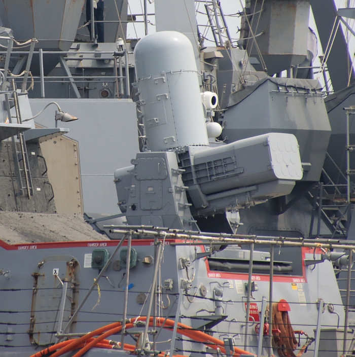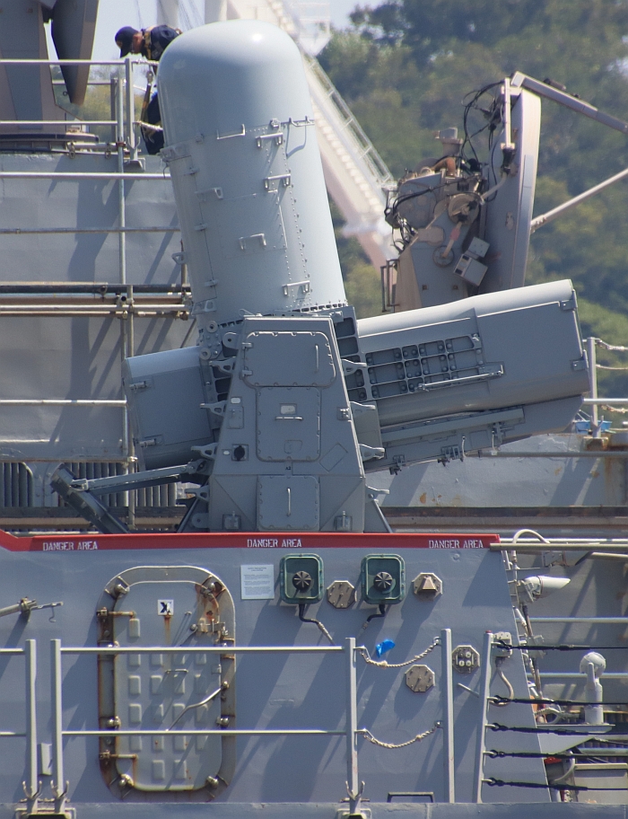 橫須賀基地。此前,美國海軍僅在部署於西班牙羅塔海軍站的四艘柏克級換裝Sea RAM近迫防禦系統,
