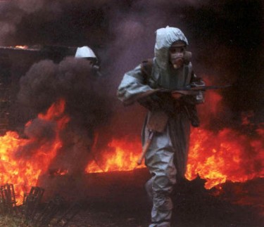 CR是美軍代號的音譯,也是一種新型刺激劑,它從20世紀70年代才被一些國家列為軍隊的裝備,CR呈淡黃色粉末,無氣味,難溶於水,易溶於乙醇,丙烯二醇、乙醚和苯等有機溶劑,CR不但不容易水解,反而在水中仍具有刺激作用,因此可用於水源下毒,CR對眼睛、鼻子、咽喉及皮膚有強烈刺激作用,使人出現流淚、噴嚏和皮膚紅斑等多種症狀,對於CR的防護與對所有刺激劑的防護相同,都可用防毒面具保護臉部、呼吸道及眼睛,中毒者都可用2%碳酸氫鈉水溶液或清水沖洗眼、鼻、皮膚,CR可與乙醇鈉、硫酸二甲酯作用,且生成物無毒,因此可用這些物質對其進行消毒作業。