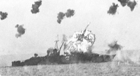 1945年6月6日,路易斯維在菲律賓的仁牙因灣遭受日本自殺機的攻擊,損傷慘重。 |