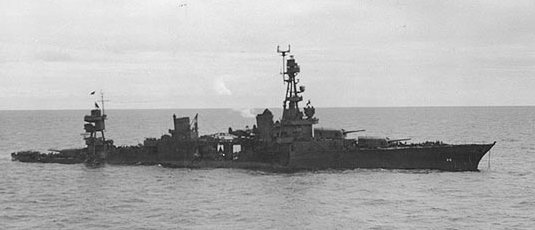 1943年1月30日,前日夜裡遭受日本戰機攻擊,失去了航行能力,進水多處的芝加哥號,即將於下午的日機攻擊中沉沒。
