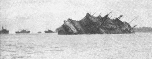 在萬丹灣傾斜入水的神州丸